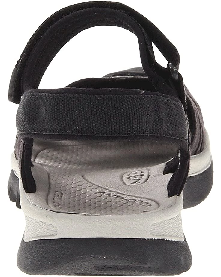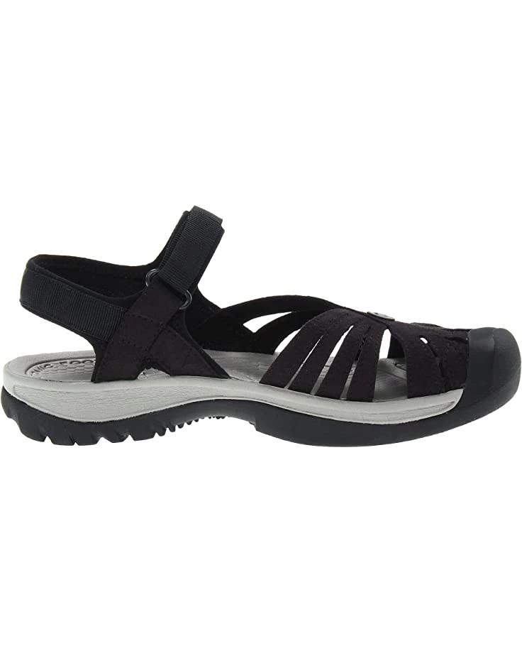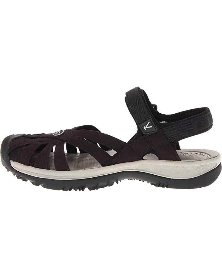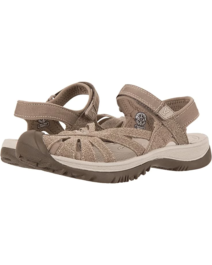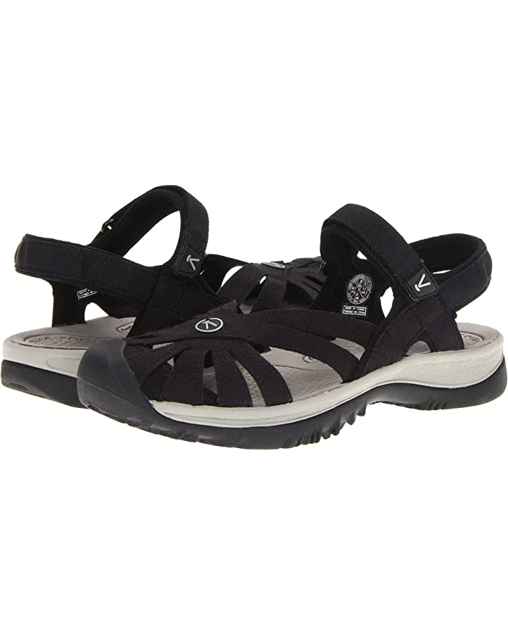 Excellent shoes! The Keen Rose sandals are my first ever “trekking” shoe and I was impressed with the rugged yet lightweight construction of this style. The straps held my feet in place and were comfortable and no chafing or blisters and the foot bed is supportive. It’s soft and flexible but I definitely felt the shoe beneath my feet – in other words, the foot bed didn’t compress under my weight. I wore these during a week-long sightseeing trip in Asia and spent many hours walking through city streets and up and down stairs, no fatigue! I was actually surprised that my feet and legs felt great after so much walking! My only complaint is that the ankle strap isn’t very adjustable. There is a stretchy fabric collar of sorts under the velcro strap, the collar is a fixed size and, for me, was a bit snug. The velcro strap is adjustable but there’s not much to adjust when the collar is already snug.