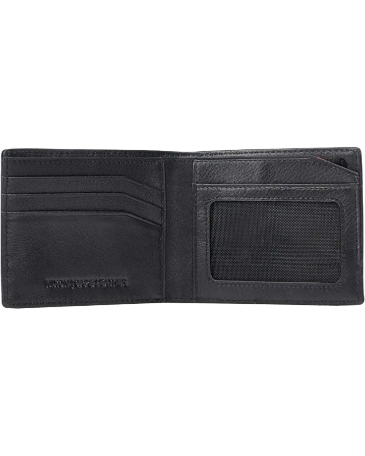 - Bi-fold wallet in a full grain leather features a classic, sleek design.