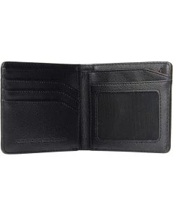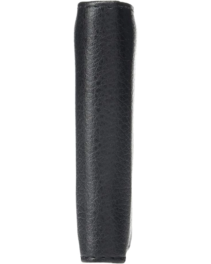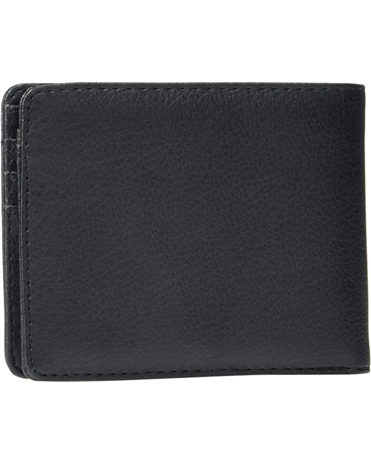 - Bi-fold wallet in a faux-leather features a classic, sleek design.