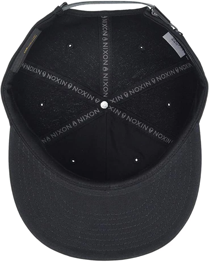 - Five-panel Nixon® Fatigue Strapback Hat with button-top design and adjustable sizer at the back.